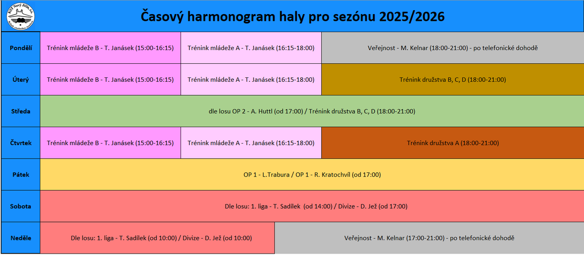 Při souběžném tréninku více družstev má přednost družstvo hrající vyšší soutěž.