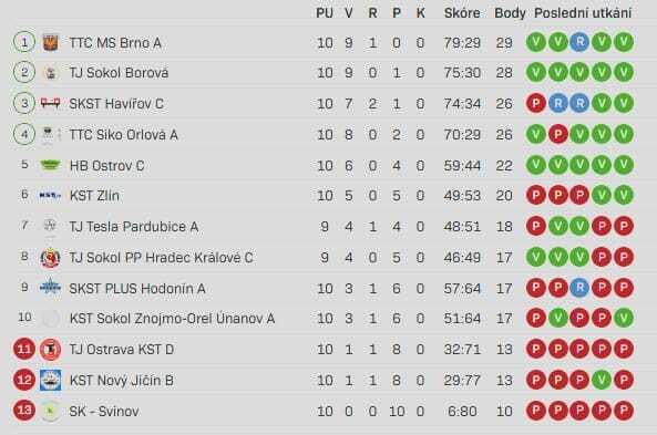 Tímto se po předposledním kole první půlky nacházíme na 12. místě v tabulce a v posledním kole nás doma čekají TJ Ostrava KST D a SK - Svinov, doufáme, že první půlku kola zakončíme dvěmi vítezstvími.