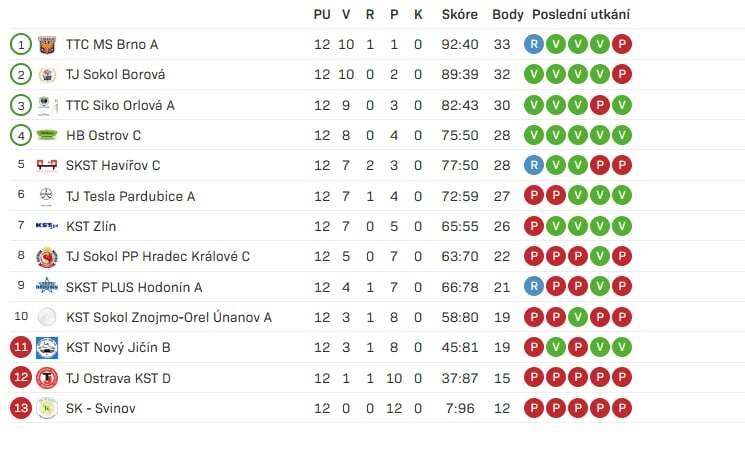 Dne 7.12. jsme u nás uvítali hráče z SK - Svinov. Vyhráli jsme poměrem 8:0. Další den jsem uvítali hráče z TJ Ostrava KST D. Tento zápas byl pro nás důležitý a proto jsme do toho dali vše co jsme jen mohli. Podařilo se nám vyhrát poměrem 8:4, kdy každý z kluků prohrál jeden zápas. Po první půlce se držíme v tabulce na 11. místě. Tato pozice je sestupová a věříme, že do konce sezóny se nám podaří vystoupat o trochu výš.
